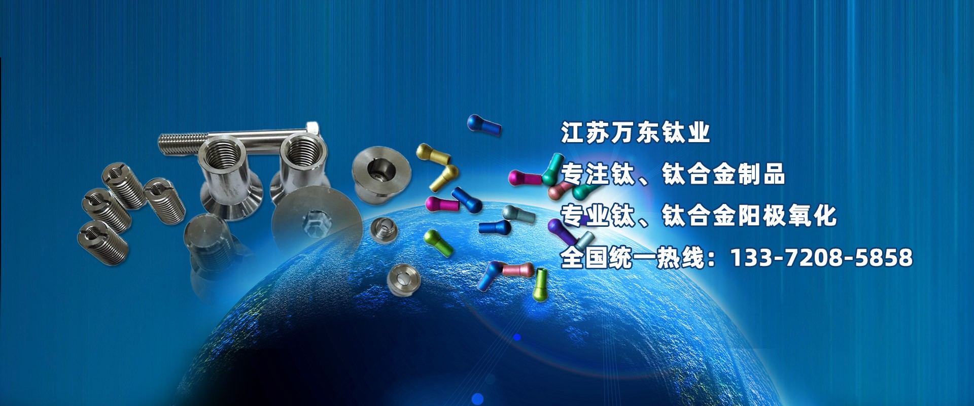 江蘇萬東鈦業科技有限公司坐落于中國江蘇省南通市,擁有28年的鈦合金研發(fā)技術,公司專業從事:鈦陽極氧化、鈦合金陽極氧化、脈沖氧化。鈦合金緊固件生產:M0.6以上高品質:螺絲、螺母、螺柱、螺套、可根據用戶的特殊要求定制。